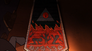 Near the end of "Northwest Mansion Mystery," Onetime Man McGucket pulls Dipper abroad from the festivities of the Northwest Fest party to tell him that he repaired the laptop and tries to warn him of the "imminent threat countdown timer" initiated on the laptop. In that same scene a tapestry of Bill Cipher floating above a landscape engulfed in flames with humans bowing down to him is seen, thus solidifying the fact that in that location is no turning back from the upcoming apocalypse.